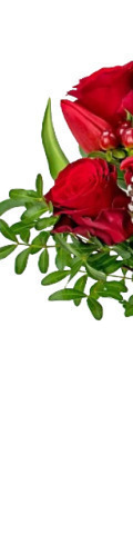 5 Red Roses, 7 Red Tulips, Red Hypericum Berries, Pinecones