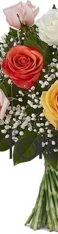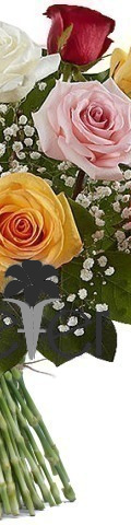Colour someone's world today with the Rainbow Roses Bouquet. A beautiful gift for Valentine's Day, birthdays, or simply because, it includes a colourful display of 3 yellow roses, 3 pink roses, 2 white roses, 2 orange roses, 2 red roses, and pure white gypsophila. Skilfully handtied and beautifully presented, this timeless bouquet guarantees to make the recipient smile, and if you want to say, "Thank You"or "Get Well Soon", there's perhaps no better way to say it.